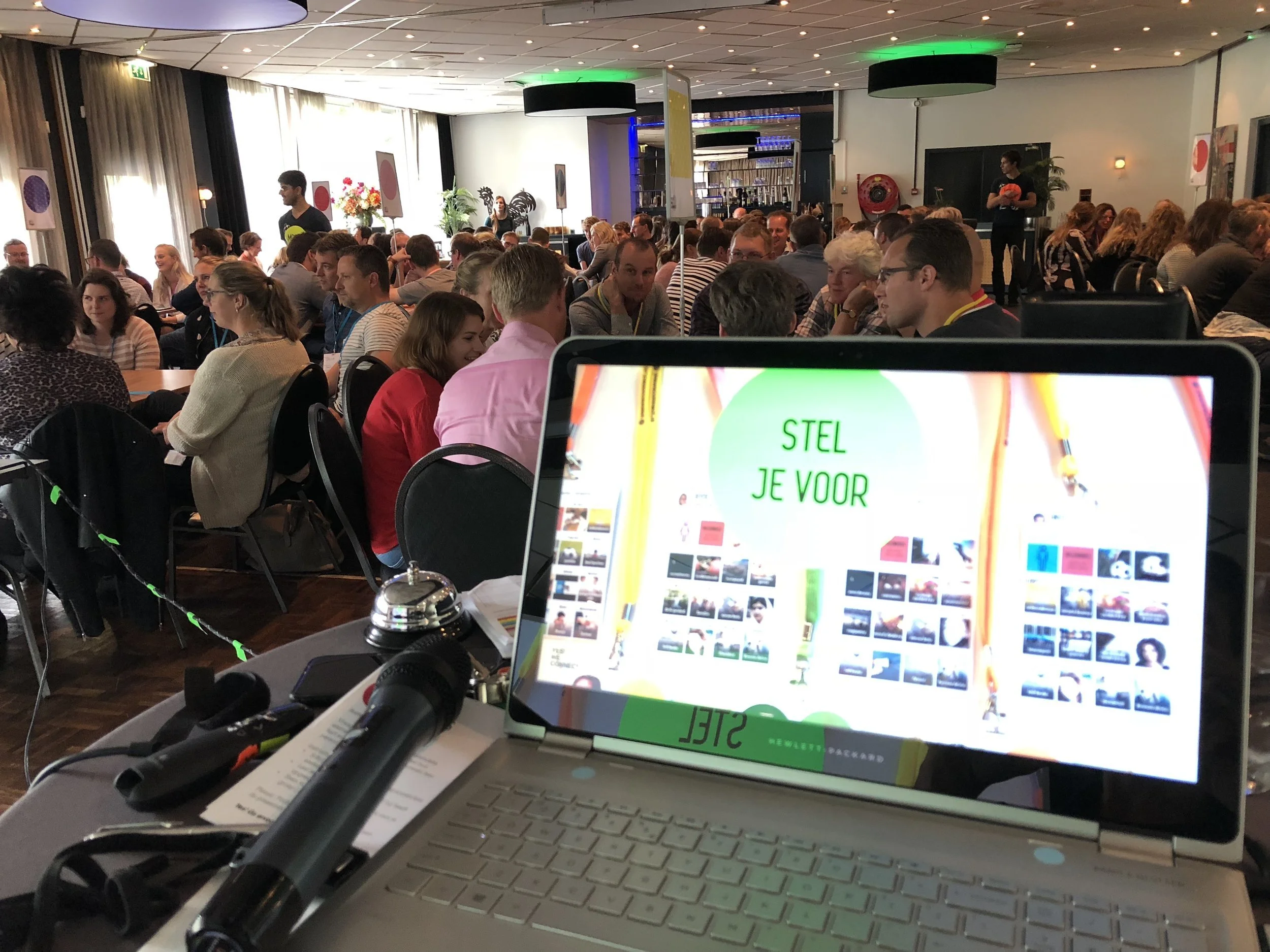 De aanpak die we met elkaar hebben ontwikkeld, ging uit van het maken van verbinding. Met elkaar en met de strategie. Iedereen had een profiel gemaakt met daarin een ook aantal specifieke vragen over de toekomst, duurzaamheid en samenwerken. Door de persoonlijke badges, de match machines, matchmakers en quizrondes leerde iedereen elkaar beter kennen en ontstond een mooie energie in de zaal.